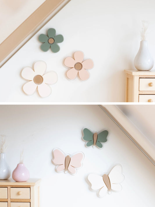 Butterflies + Flowers Wall Decor | Dusty Rose + Sienna + Tan