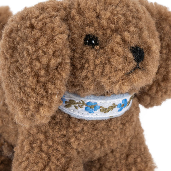 A soft and snuggly little puppy made for the tiniest hands. With a gentle bell inside, it creates a soothing rattling sound when shaken—bringing comfort and joy to your little one. Safe from birth and crafted from the softest materials, this sweet puppy makes the perfect first companion.