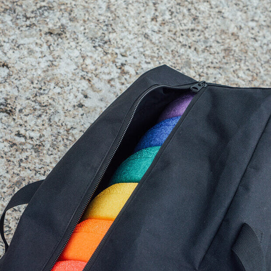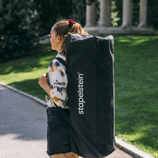 Store your Stapelstein® safely with this practical travel bag. Perfect for on-the-go play, travels and outdoor adventures. This canvas bag keeps up to twelve Original elements neatly stacked, clean and protected. Did you know that a full bag of Stapelstein® weighs less than half of your child’s backpack? Simply sling over their shoulder for a comfortable fit and limitless fun.