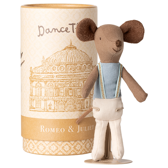 This ballet dancer mouse is the star of the stage! Dressed in a dancing suit with golden suspenders, Big Brother is ready for his grand performance in Romeo and Juliet. He arrives in a beautifully decorated tube and comes with a metal stand, so he can perform wherever you wish. His magnetic paws allow for a graceful dance rehearsal with his partner.