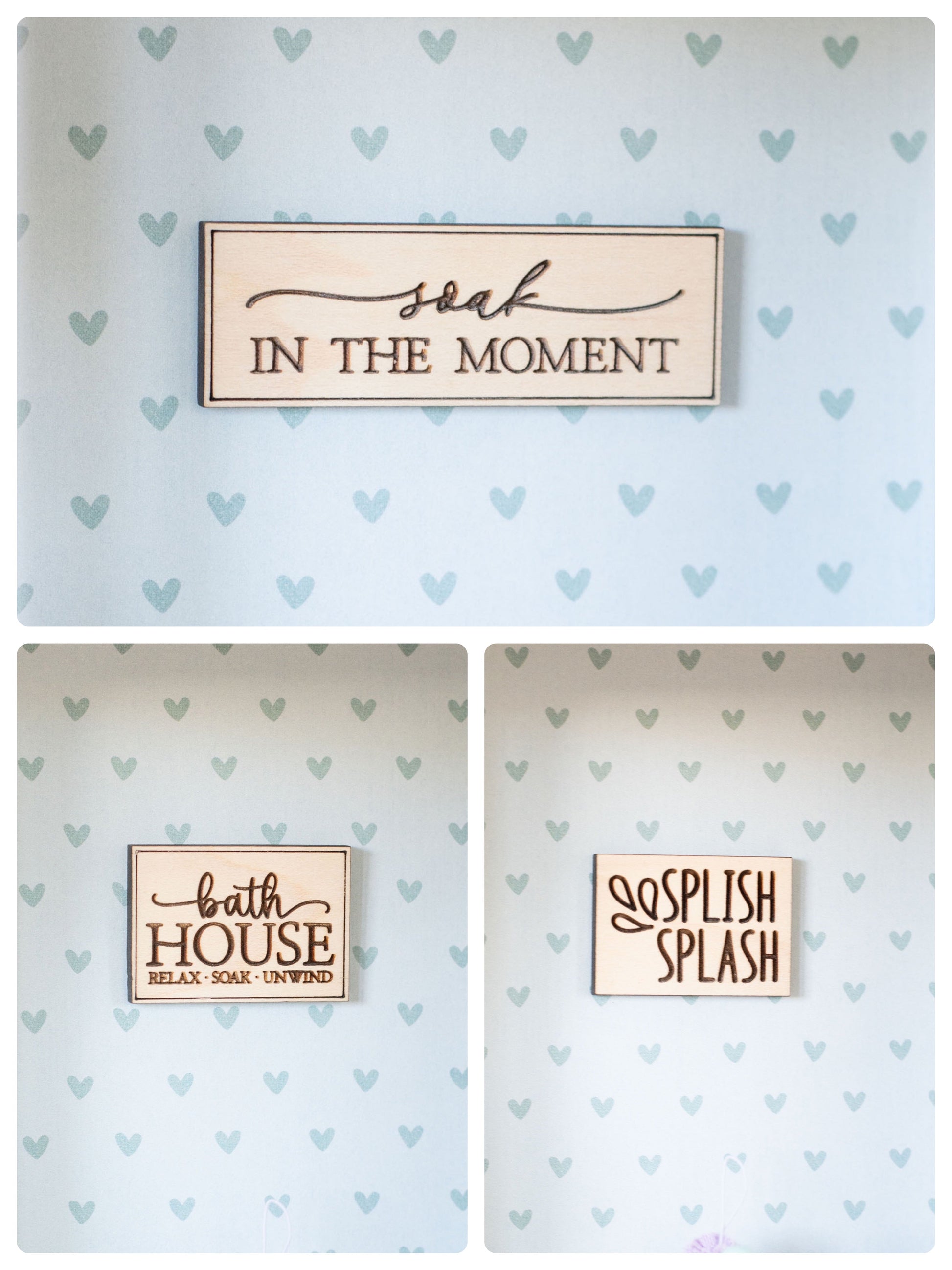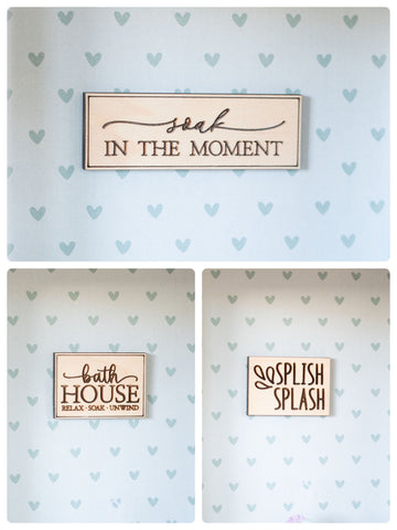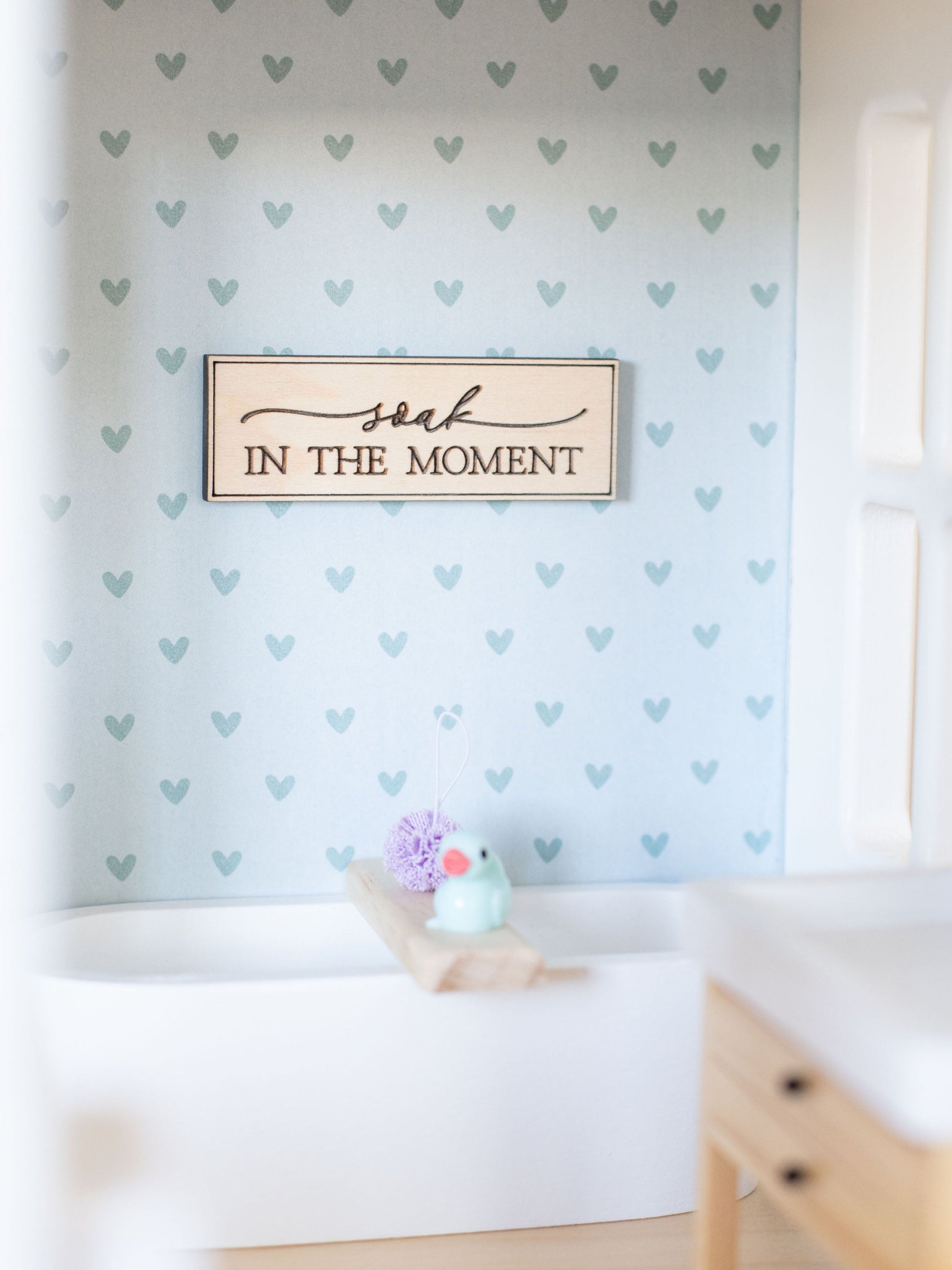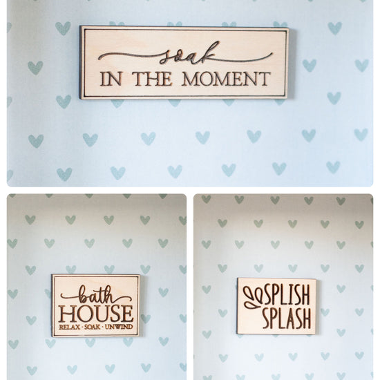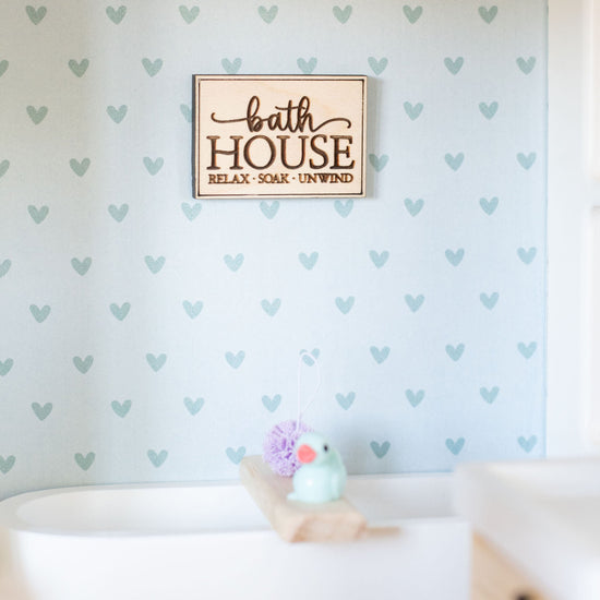 Make a splash with our bathroom wall signs! Three adorable styles to furnish your dollhouse bathroom. Your miniatures will love modern styles of these signs. Made from natural wood to give your bathroom a relaxing oasis feel.