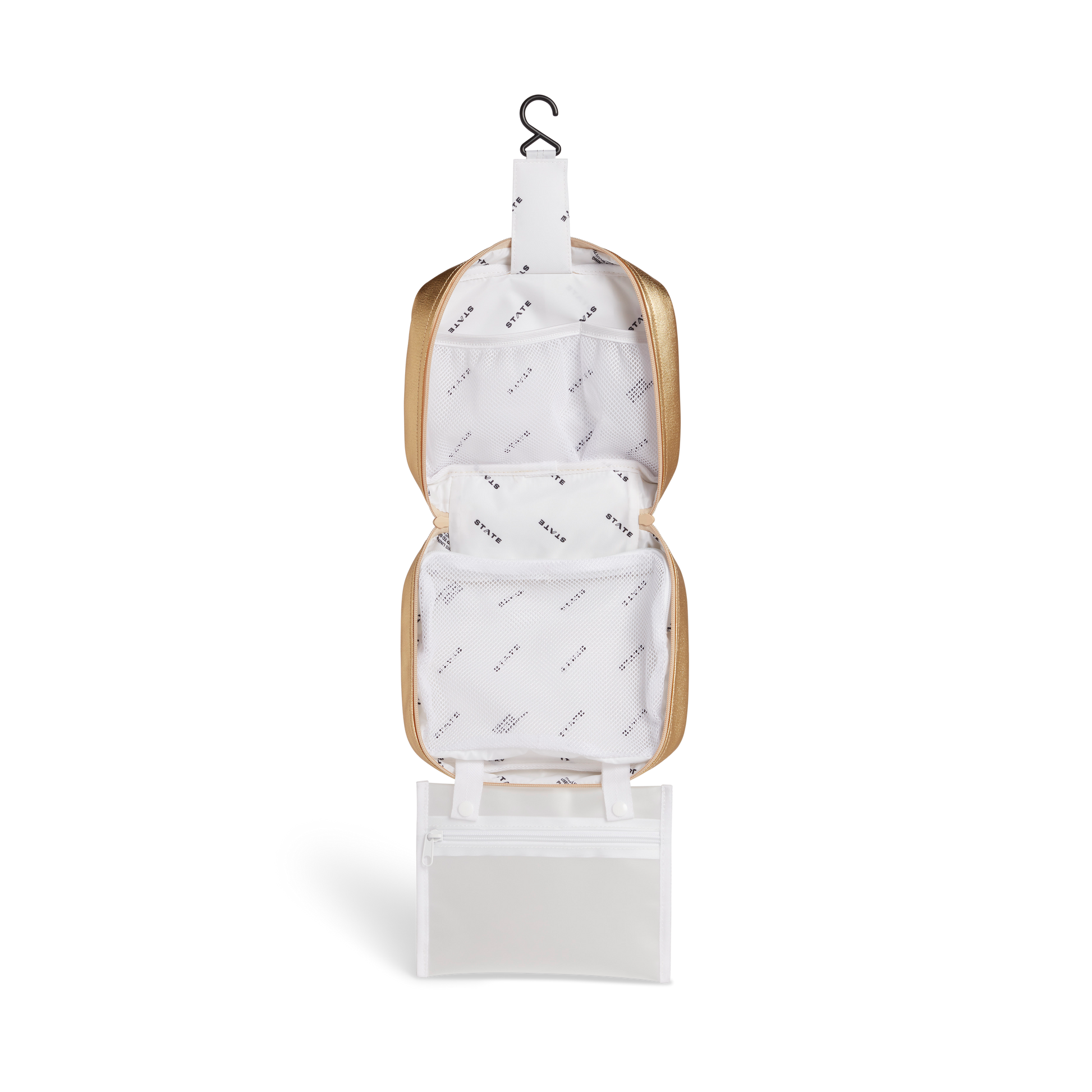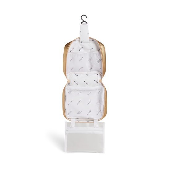 Our award winning, collapsible hanging toiletry kit thoughtfully designed with a place for every item you need.