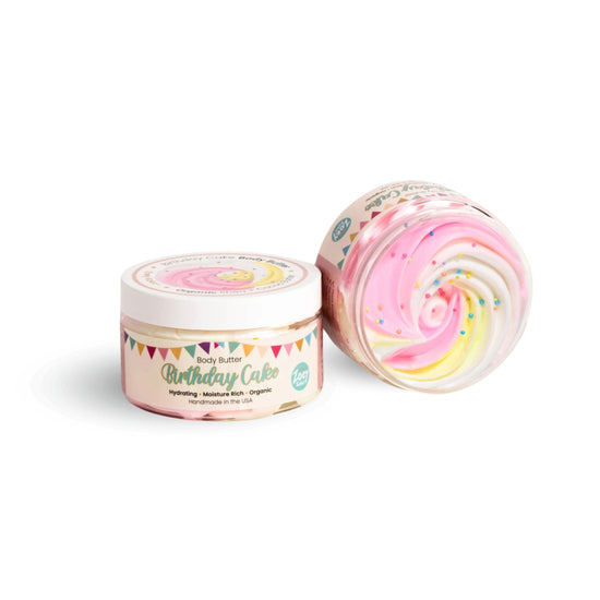 It's not just any ordinary body butter—it's a whole celebration for your skin! Packed with the delightful scent of freshly baked birthday cake and blended with super-moisturizing shea butter and nourishing oils, this body butter is like a sweet treat for your skin!