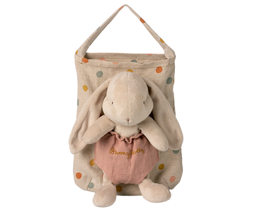 Bunny Holly and Bunny Bob are a must-have for all small cuddlers. Their plush design is so soft, and they fit perfectly in your arms. Bunny Holly comes with a sweet polka dot bag with a pocket on it, so you can carry your friend along.