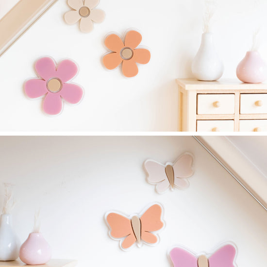 Adorable acrylic accents to spruce up the walls in your miniature home! Choose from flowers or butterflies to bring color to tiny rooms. Use them individually or layer in sets!