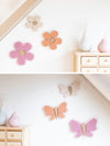 Includes: 1 set of 3 wall decor pieces, in your choice of butterflies or flowers