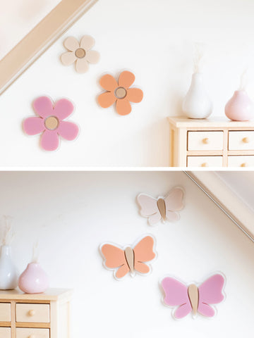 Butterflies + Flowers Wall Decor | Dusty Rose + Sienna + Tan