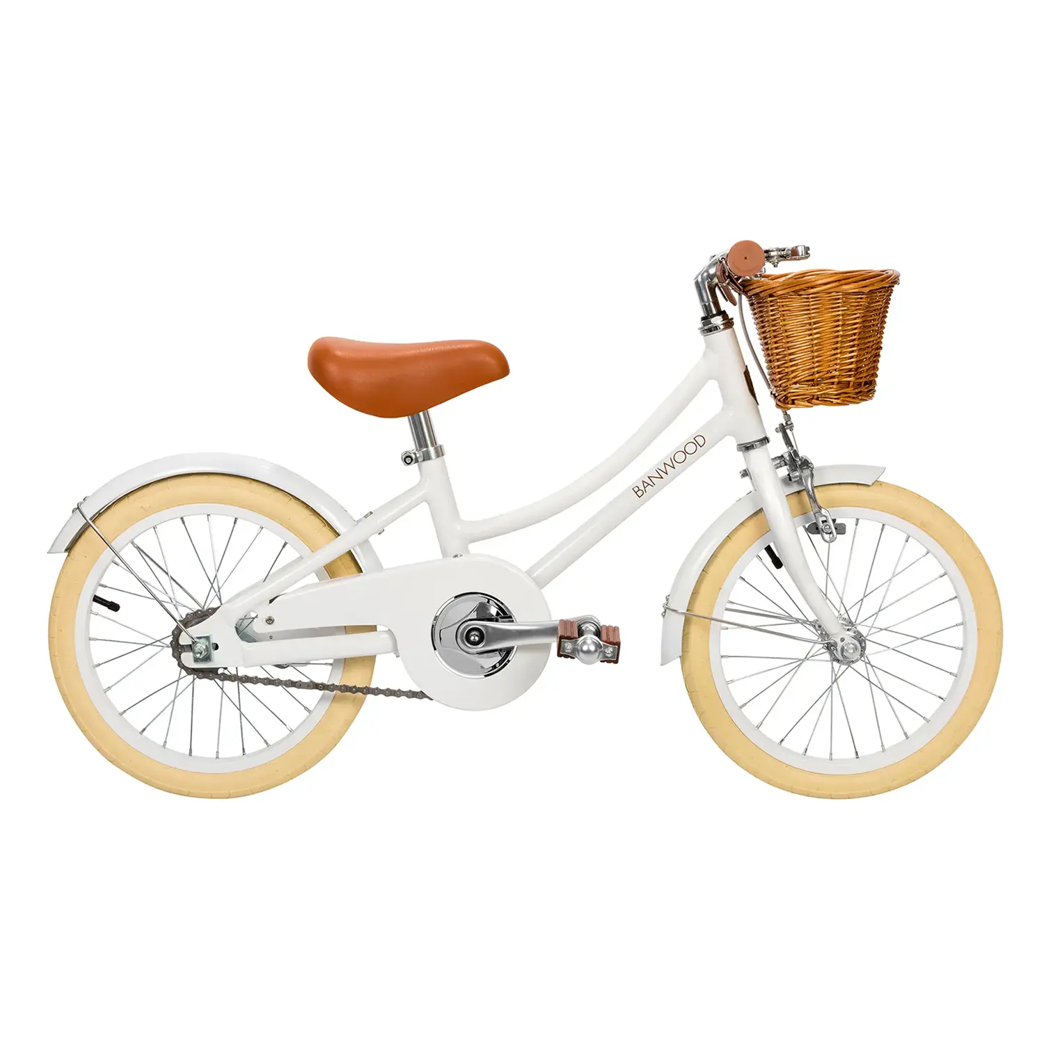 - Banwood brown faux leather saddle and grips in matching colour