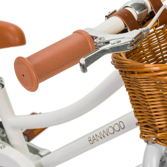 Inspired by vintage bicycles for adults and influenced by Scandinavian design, the Banwood Classic features a lightweight alloy frame in cream finish. And your mini me cyclist will be the coolest kid on the block with the bike sporting Banwood’s brown faux leather saddle and grips in matching colors, Banwood’s unique rosewood vintage pedal, cream 16” tires and a detachable wicker basket in rattan – perfect for packing in the essentials (think lunch, water bottle and favorite toy!) for a day’s adventure.