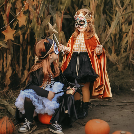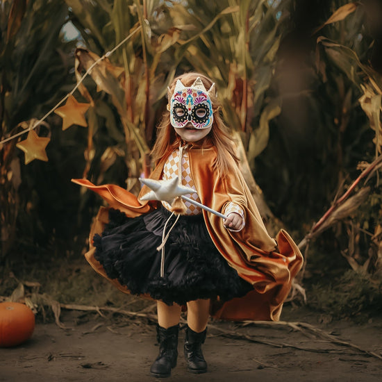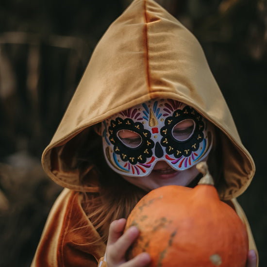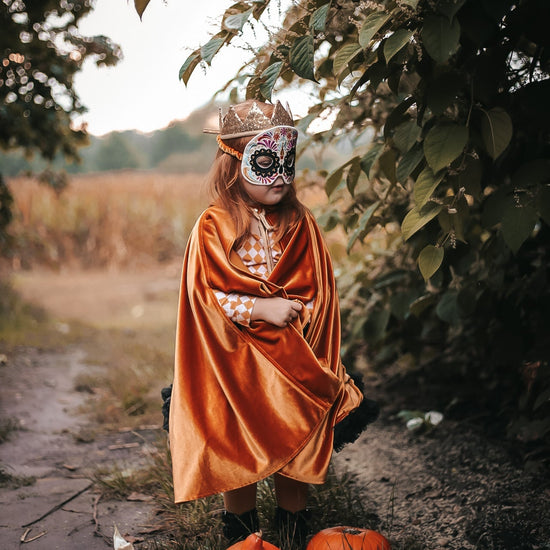 Any imaginative child will invent endless adventures to embark upon when presented with this dramatic and majestic mask! Our exquisite masks are truly a must-have for theatre class, costume parties, fun photoshoots, fantasy playdates, or of course – Halloween.