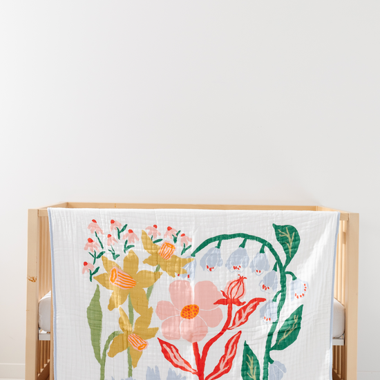 We love muslin for its breathability and versatility. The loose weave of the fabric keeps your little one warm without overheating and the fibers are absorbent and soft. They’re a go to for us at bedtime, playtime, meal time, any time.