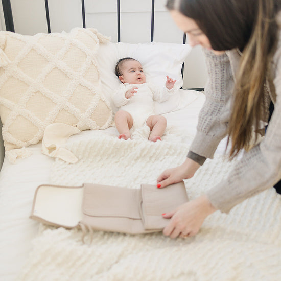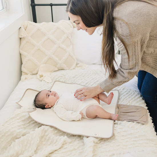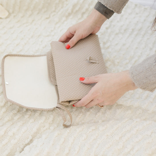 When creating our all-new diaper changing pad, we wanted to bring simplicity and ease to your already busy day. This washable, portable pad is lined with organic cotton to protect your little one’s skin, and its compact design resembles a clutch for easy carrying & effortless style. Just unhook the pad’s buckle to unfold your portable changing station, and fold it back into its versatile clutch shape when finished. Made in South Korea