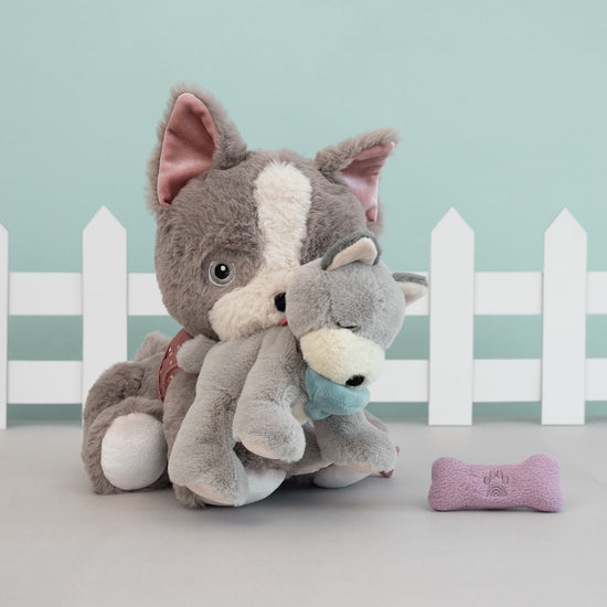Gizmo’s ultra-soft fur makes him the ultimate snuggle buddy if you're having a ruff-day or just need some puppy love! Gizmo has a secret obsession to treats, often enjoying a magnetic bone. Gizmo comes ready to play, walk and snack, with a removable canvas harness, lead, and bone treat – because every good dog needs a treat, right!