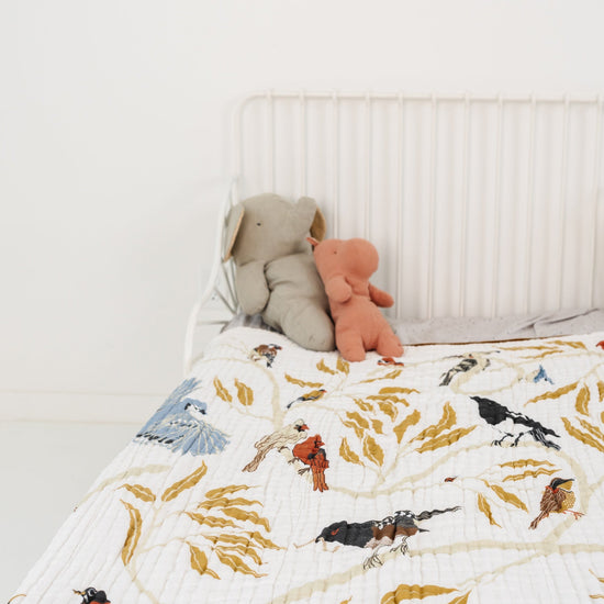 Grab your binoculars, we're going birding. One side of our For the Birds Throw, you'll find a collection of sweet and playful birds including: Bluejay, Robins, Hummingbird, Quail, Cardinals, Strawberry Finch, Goldfinch, Stripe Headed Tanger, and a whole lot more... the other side is a rich and earthy brown.