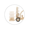 - When the side knob is turned, the pallet fork moves up and down to raise and lower the pallet of wooden cubes