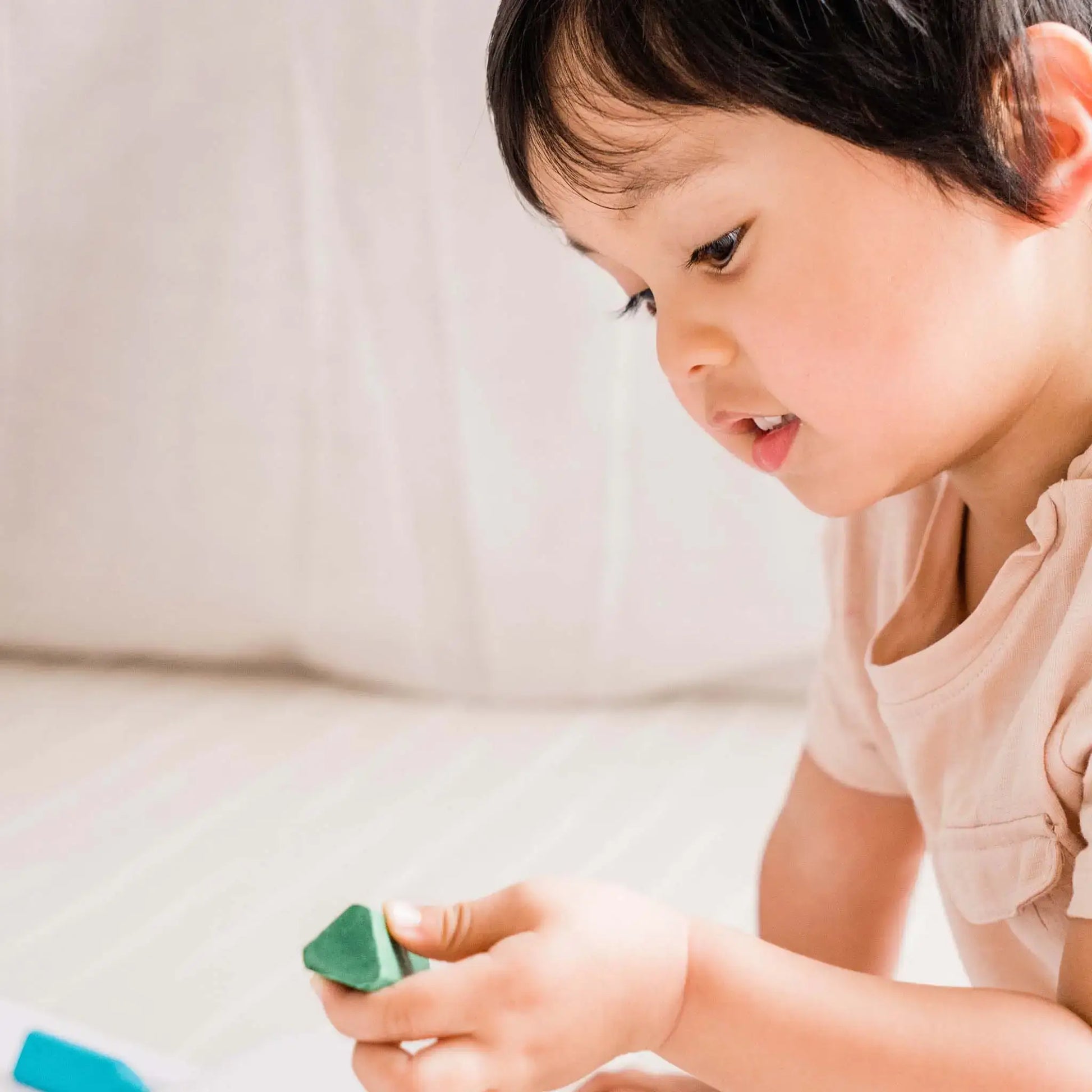 - Easy-grip triangular shape: The perfect beginner crayon — 5.5cm long and 2cm wide, shaped for developing grips and made to stay put on the table.