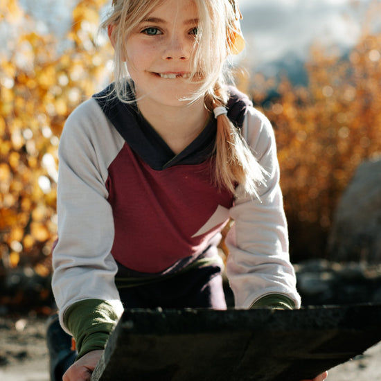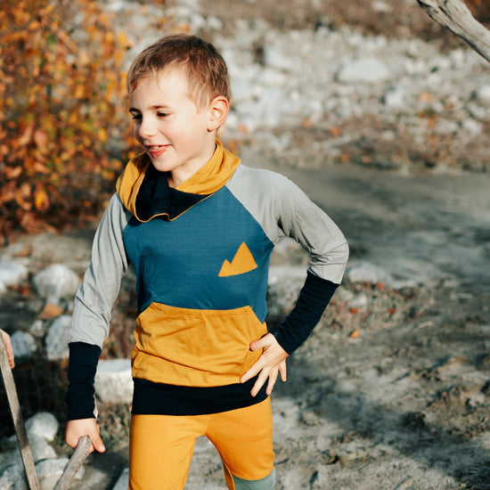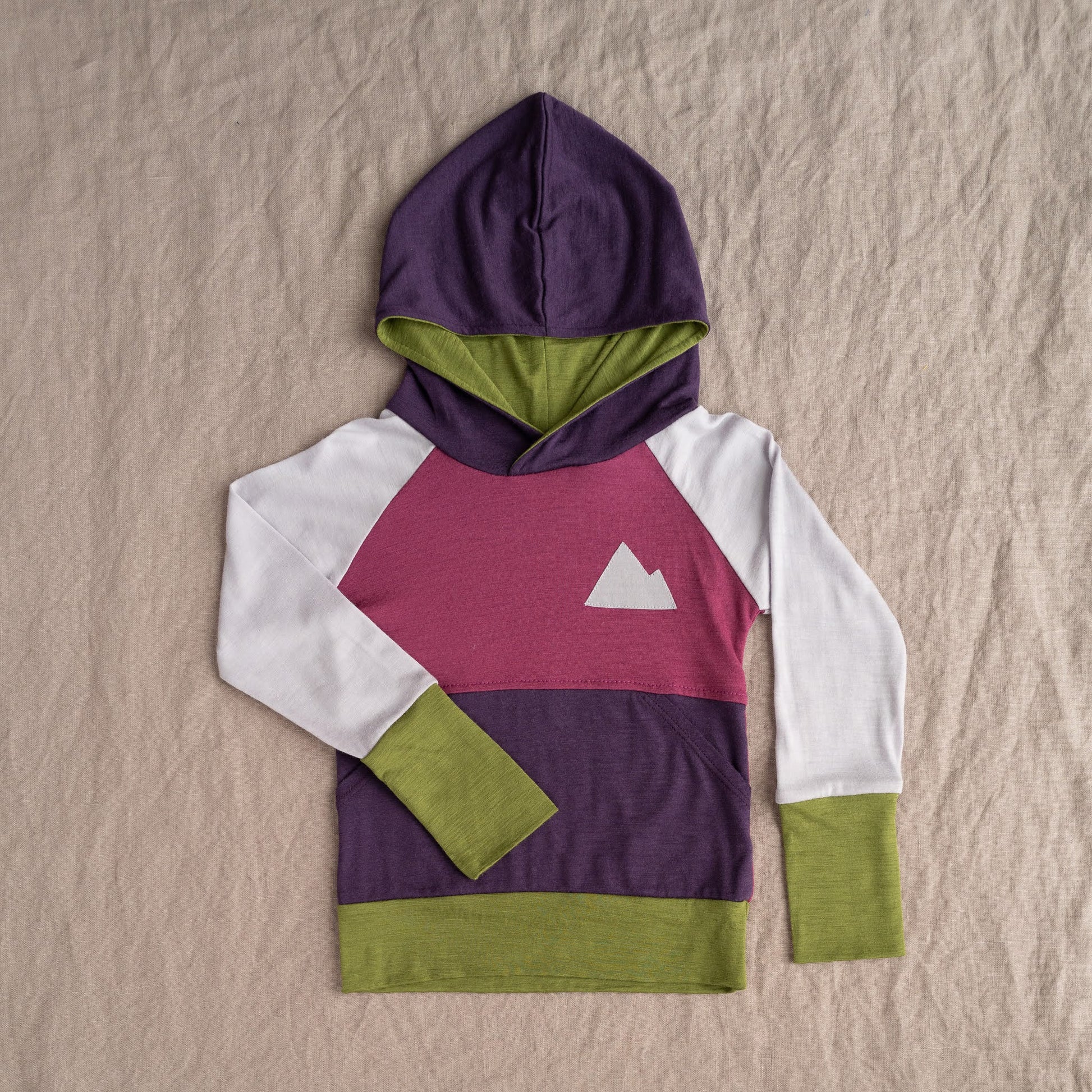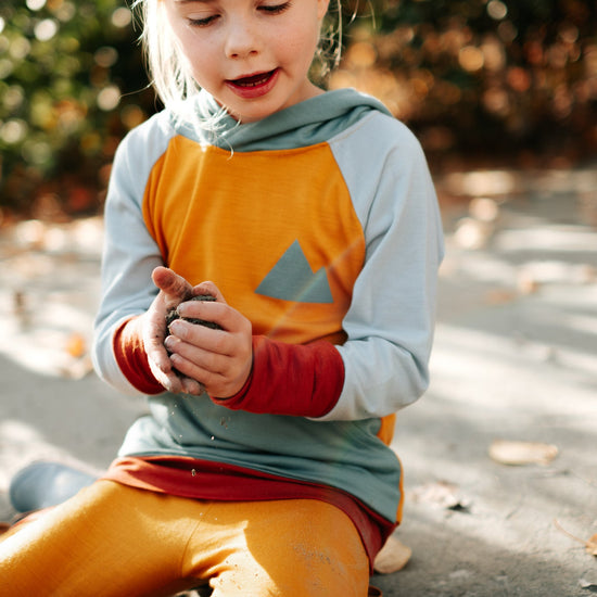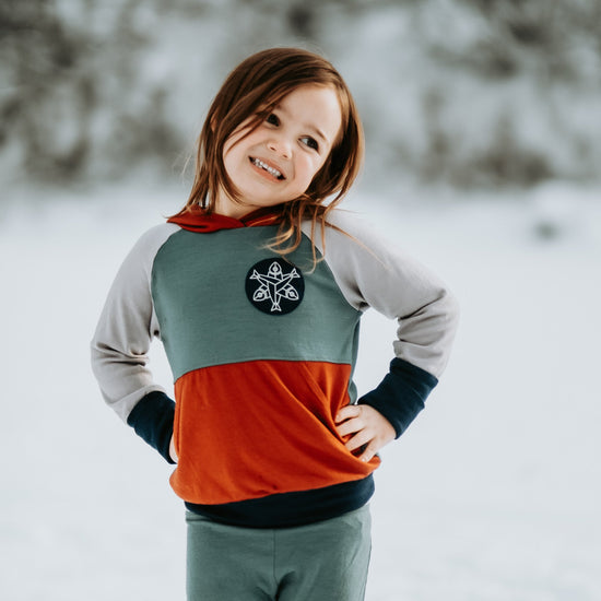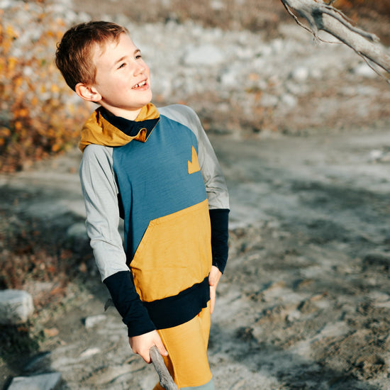 Soft, warm, and colorful, our Kids Free Range Hoodie is the perfect top for any adventure. Crafted from premium 100% merino wool, it features a lined crossover hood to keep ears cozy and an oversized kangaroo pocket for treasures. Perfect as a kids' thermal base layer, this hoodie is super versatile and will become your kids' favorite for every adventure. Plus, the grow-with-me design ensures it will fit for years to come, season after season.