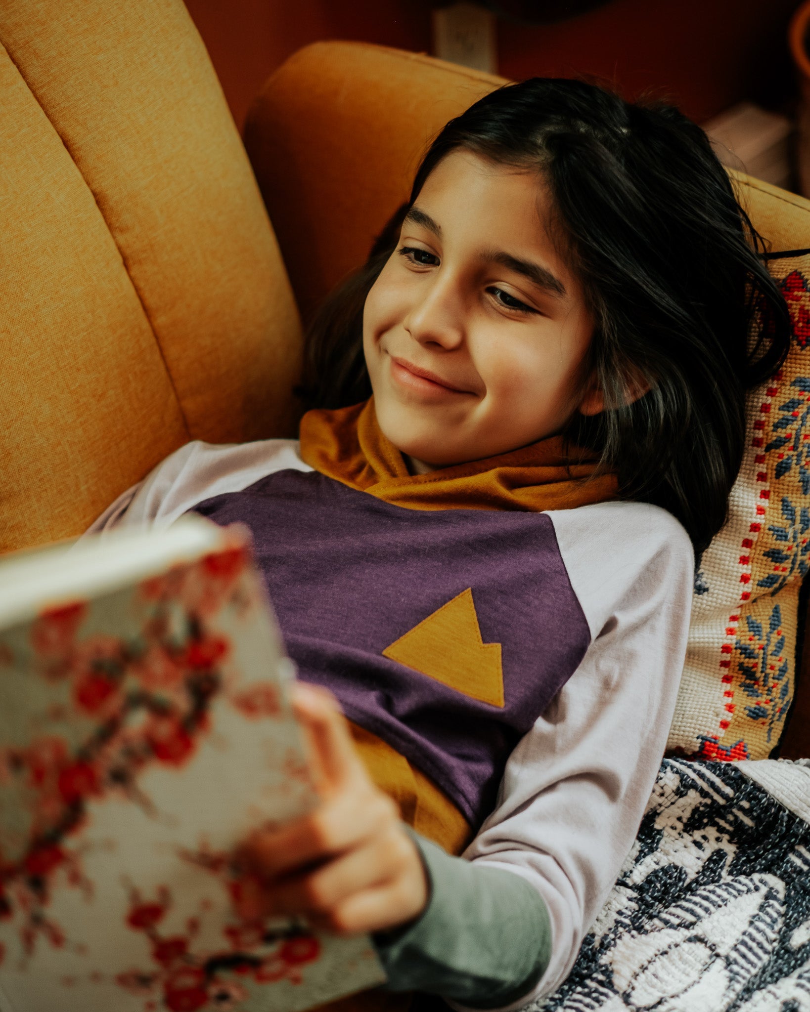Our innovative kids clothing comes in "grow-with-me" sizes. This means they are designed to fit kids for several years with long cuffs that roll up and wide roll-over waistbands.
