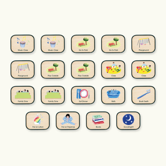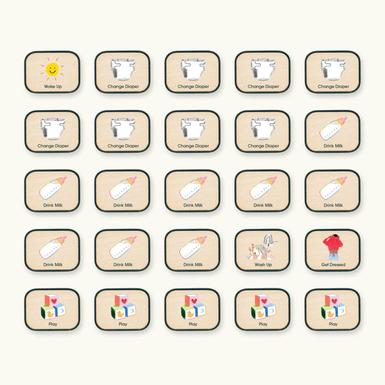 - 68 Activity tiles (includes illustrated tiles for common baby morning, evening day-to-day activities)