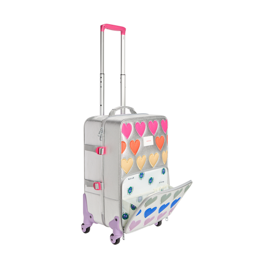 Keep travel fun for your kid and functional for you. Our Logan Carry-On features smooth, 360° spinner wheels, a kid-friendly adjustable handle, and thoughtful functionality designed to keep everything in place—plus a bold, stand-out design that is just as unique as your kid.