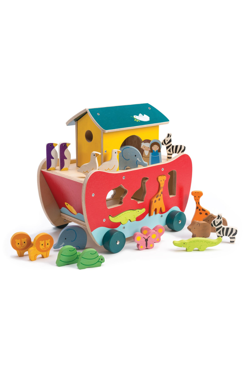 Noah's Ark has removable roof panels and side panels lift up to allow little hands to collect the chunky wooden animals.
