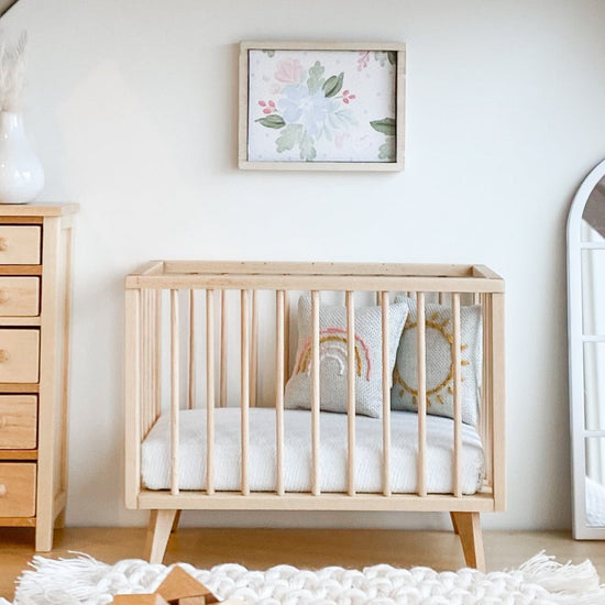 Introducing our adorable Dollhouse Crib with Mattress in Natural Wood – a miniature nursery essential that combines functionality and charm! Carefully crafted with attention to detail, this crib adds a touch of warmth and coziness to your dollhouse baby's room. This crib comes with a soft and comfortable mattress, providing a cozy spot for your dollhouse baby to rest and nap.