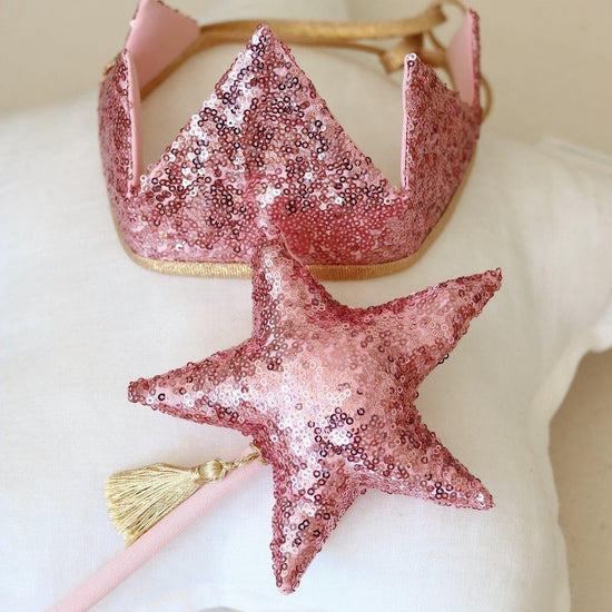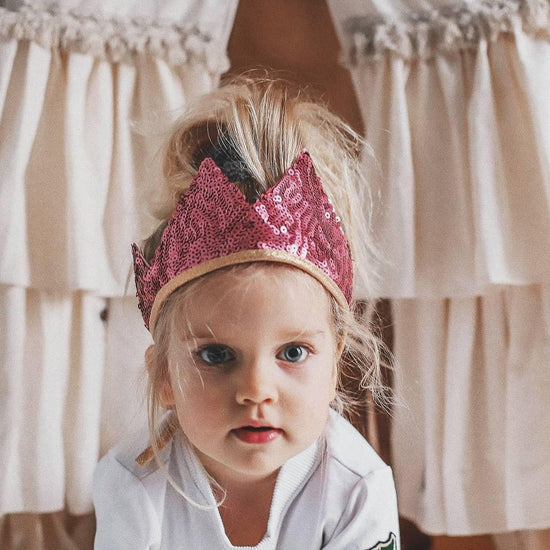 The crown is made of high-quality cotton and covered with sparkling sequins. Tied in the back, it easily fits any size head. It is also double-sided.