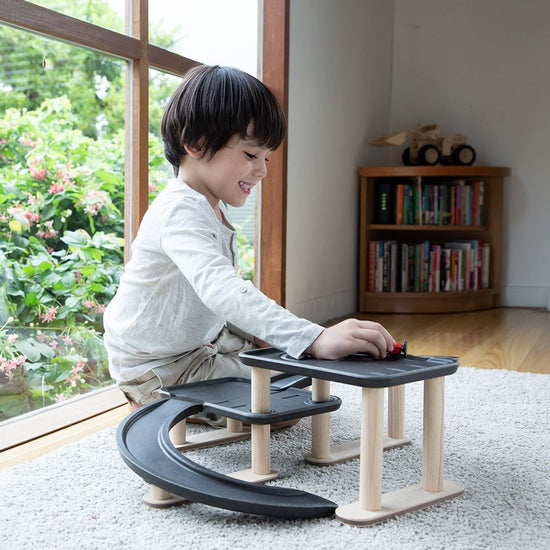 - The PlanToys Race N Play Parking Garage is hours of fun for children to park their favorite cars on multiple levels and race them down the ramp to see which is fastest