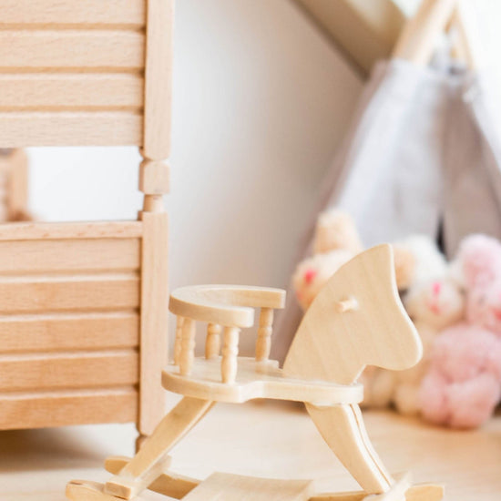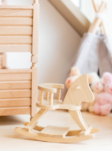 The perfect toy for your dollhouse nursery to bring a nostalgic vibe to life. It's a miniature equine delight that brings timeless charm and playfulness to your dollhouse nursery or playroom!