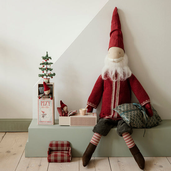 This fantastic small Santa wears a beautiful lambs wool sweater and casual pants. Together with his lovely wife, he really brings the true Christmas atmosphere and is a must-have in every home.
