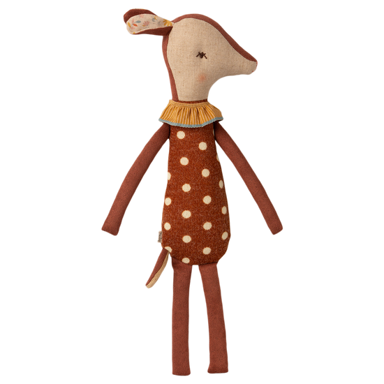 Our Bambi is fast asleep on one side, while the other side is awake and ready for playtime. Enjoy the sweetness of putting your friend to sleep and waking them up again. Bambi makes bedtime and playtime magical and gives the softest hugs and cuddles. This sweet friend also makes a wonderful sleep companion.