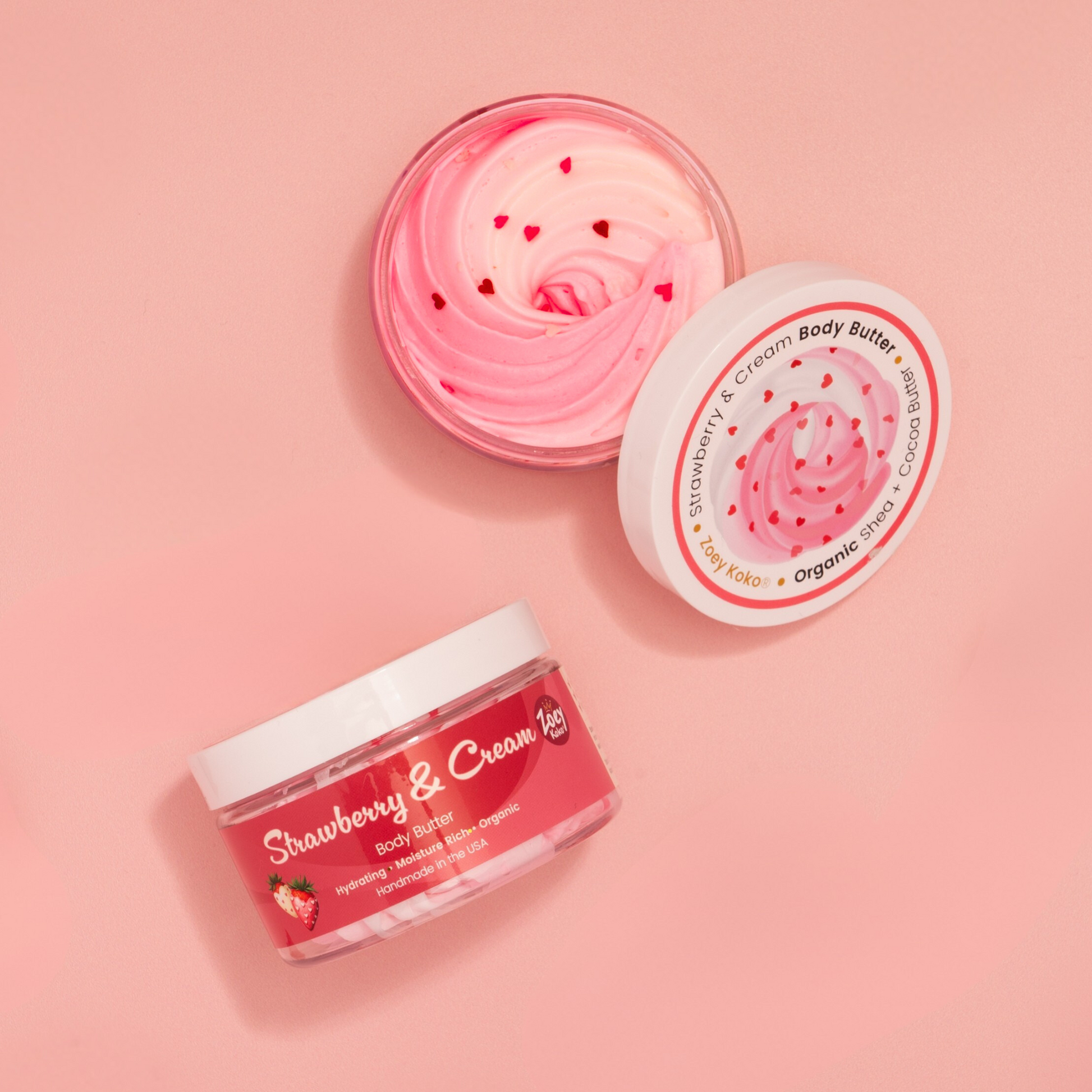 Indulge in Berry Bliss with Our Strawberry & Cream Body Butter by Zoey Koko!