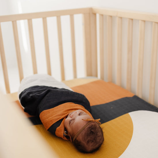 Made from 100% cotton muslin, our comfy cozy crib sheets are made to keep your little one the perfect temperature and look beautiful in your nursery. The loose weave of the muslin allows for air flow and prevents overheating. Sheets feature elastic corners for easy application and easy removal.