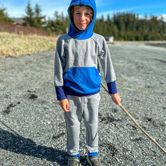Made from 100% merino wool sweatshirt fleece, this hoodie is designed as a mid-layer to replace your polyester fleece once and for all. Our Ultra Cozy Merino Hoodie has an oversized lined hood, kangaroo pocket, and signature "growth-spurt proof" design. Plus, it's machine washable!