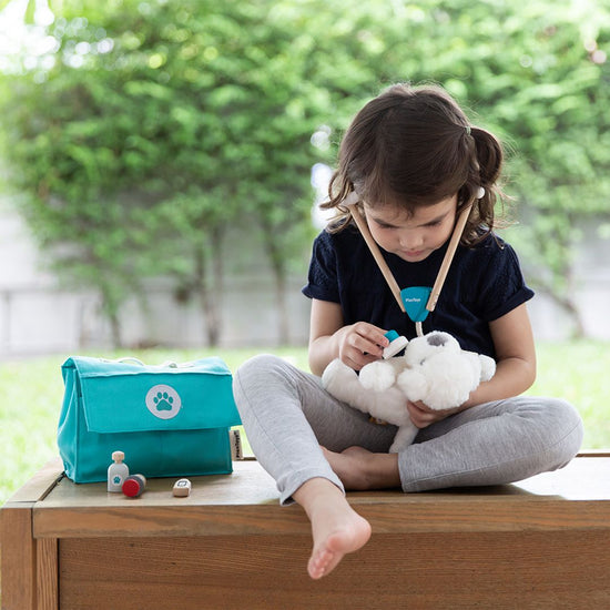 - Children can pretend play as a veterinarian as they treat their stuffed animals