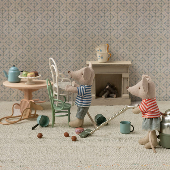 A small chair that fits the Little sister/brother and Big sister/brother mice. Fits perfectly into the small rooms where the mice lives.