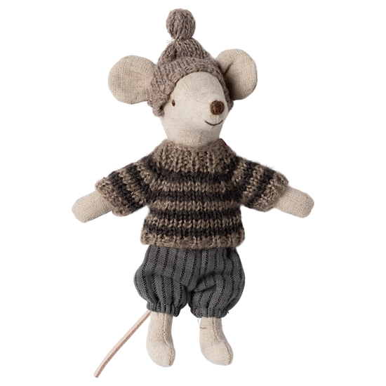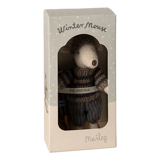 A mouse ready for hours of fun on the slopes during the cold wintertime. Each playset contains a warmly dressed mouse with a pair of ski and poles. Look at the tiny knitted hat that will keep the ears warm.